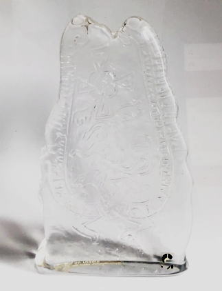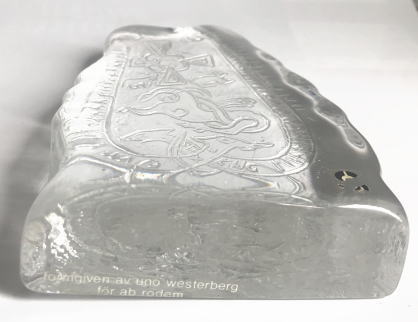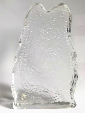 スウェーデンのガラス工房Pukeberg 北欧バイキングのルーンストーン ルーン文字や動物がデザインされたずっしりとしたクリスタルガラスオブジェ