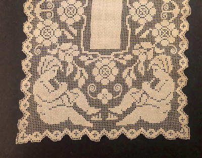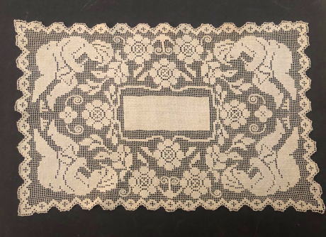 はじめに糸をむすんでネットを編み、そして刺繍でしあげていくフィレレース、大変な時間、手間を必要とします、