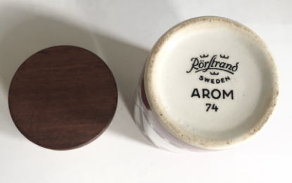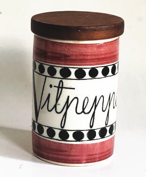 Rorstrand マリアンヌウェストマンデザイン Aromシリーズのスパイスジャー Vitpeppar白コショウ チークにコルクのついた蓋が付いています、スウェーデンで人気が高いシリーズです。
