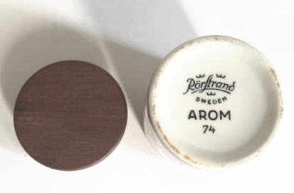 Rorstrand マリアンヌウェストマンデザイン Aromsシリーズのスパイスジャー Kryddpepparスパイスコショウ チークにコルクのついた蓋が付いています、スウェーデンで人気が高いシリーズです。