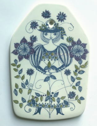 | ノルウェィFiggjoのlotteシリーズ、お花に囲まれた女性と男性のかわいいデザインのプレートです。手描きされた絵柄をシルクスクリーンプリントしたものです。北欧ではサンドウィッチプレーとしても使われ、、、使えてかざれる便利なものです。、*裏側に釉薬をのせたあと、乾かす際にできたマークがありますが,このシリーズに必ずみられるものでダメージなどではありません。 |