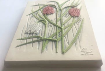Kungsangslilja の陶板 壁掛け、JIE Gantoftaはスウェ―デン人に最も愛されるメーカーのひとつでスウェ―デンの家庭でよくみかけられます。雰囲気のよいセラミックが日本のご家庭にも合うことと思います。、、