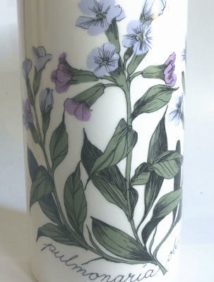 pulmonariaobscuraというお花のデザインです。、、、、裏側にはARABIAのマーク、Esteri Tomulaのサインが入っています、