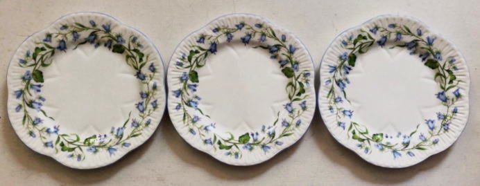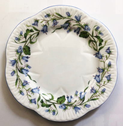 フォルムはTall dainty カンパニュラの花とフリルのような美しい縁のフォルムデザイン 縁のブルーはハンドペイントされたものです 1940年から66年の間に製造されたもので絵柄はハンドペイントではありませんが手作業で入れられたためわずかな個体差が見られます *在庫3点