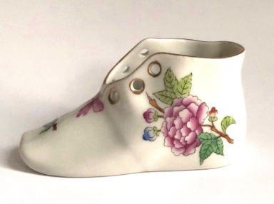 世界の名窯 ハンガリーのHerendヘレンド窯のヴィクトリアシリーズのベイビーシュー 靴型のの小物入れです、丁寧に手描きされた絵柄が素晴らしいです、