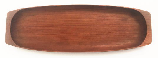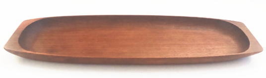 スウェーデンSTAKO社のチークトレイ、チークの木を贅沢にくりぬいてつくられたもので木目がいかされたデザイン、、深いチークの色合いもよいものです