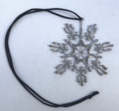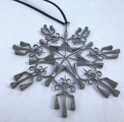 窓辺にさげて飾るオーナメント、馬の蹄鉄をとめるくぎをつかってハンドメイドされたもので魔除け 幸運を呼び込むためにかざられることがあるそうです。