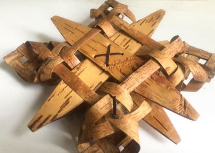 Naverとよばれる白樺の皮で編まれた壁掛けです、、、雪の結晶のようなデザインです。北欧らしいあたたかみのあるお部屋のインテリアですね、、、 *梱包はしっかりさせていただきますが震動等で接着剤で張り付けた部分がはがれる可能性もありますが接着剤で直していただけます
