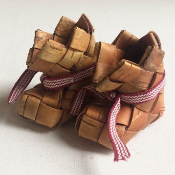 白樺の皮を使ってハンドメイドされたNAVERとよばれる細工のかわいらしいミニチュアの長靴です。細部もていねいに作られています。、、、