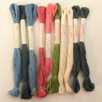 スウェ―デン Marks Linda 麻糸 左の3色はEveの麻糸です。 LindaはKlippanのLingarn、EveはLintradぐらいの太さです