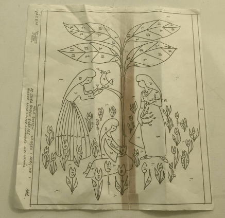 フレミッシュ織キット Varen春 3人の女性 チューリップやことりのデザインです。