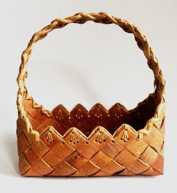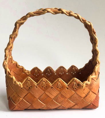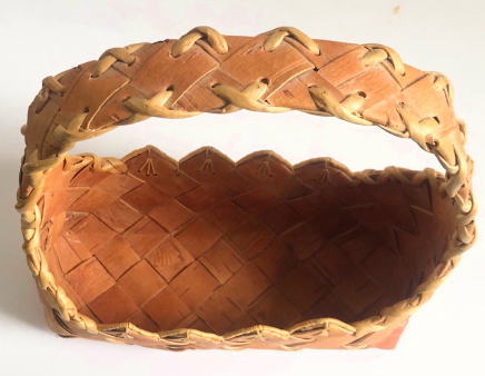 Naverとよばれる白樺細工、皮をなめして編まれた白樺のかご 細部のデザインもきれいです 小ぶりのサイズです