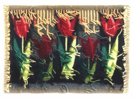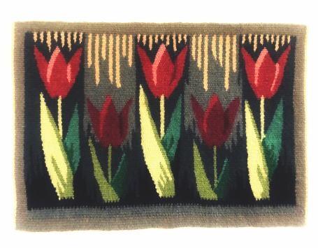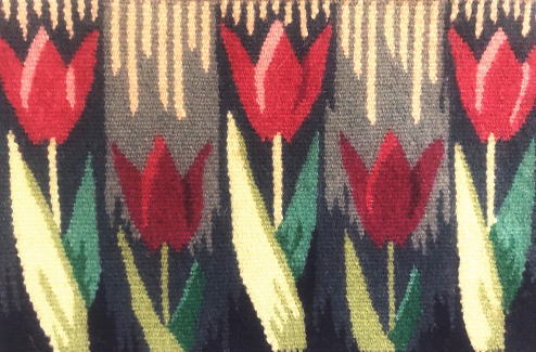 落ちつきのある色合いで綺麗に織り上げられたチューリップの花壇 フレミッシュ織作品です、
