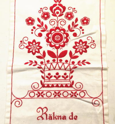 スウェーデン 伝統刺繍Delsbosomデルスボー刺繍、、、型をつかって図案をつくる独特な刺繍法です。