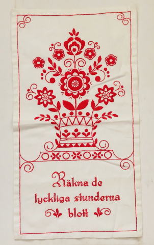 デルスボー刺繍独特のお花のデザインと詩が刺繍された作品 壁掛けまたはテーブルセンターとしてお使いいただけます