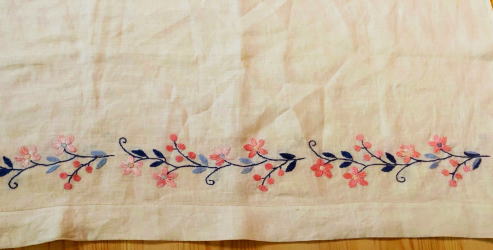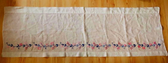 スウェーデンの伝統刺繍のひとつBlekinge ブレーキンゲ刺繍のカフェカーテン。