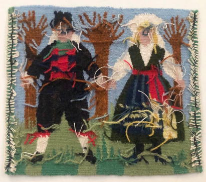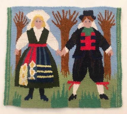背景にPILの木がみられますのでスコーネ地方(南スウェ―デン)の民族衣装と思われます。