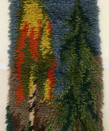 RYA RUG(リイヤ織/リイヤラグ)のタペストリー 黄葉した白樺の木 針葉樹のデザインです。