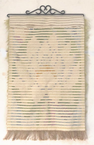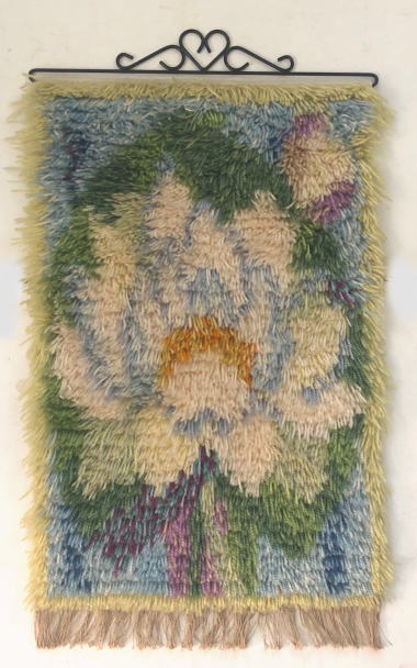 RYA RUG(リイヤ織/リイヤラグ)のタペストリー、蓮のようなお花がデザインされています。