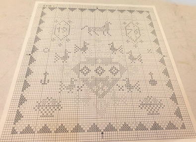 デンマーク Fremmeの刺繍キットです。Fremme 1961年のカレンダー Birthday motifs 4月のデザイン チャート 花糸 麻布 針のキットです。