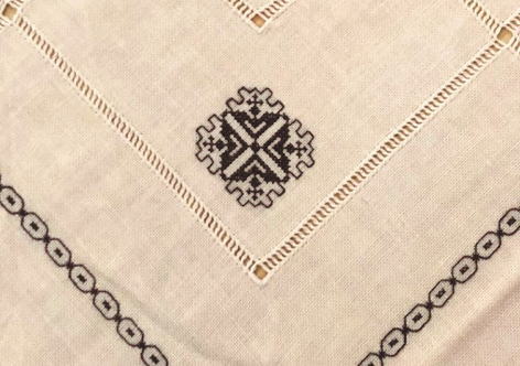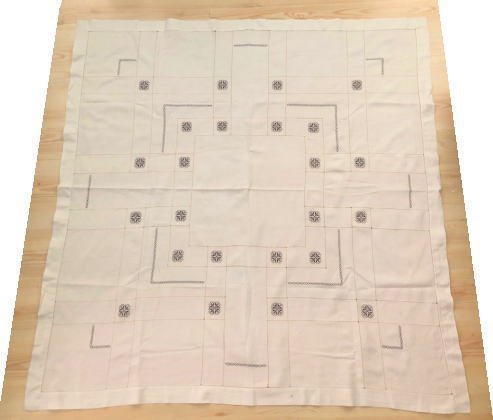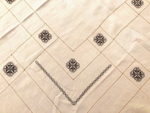 Svartstick黒糸刺繍とHalsomホールソム刺繍の刺繍法をつかって刺繍された大作 テーブルクロスです。