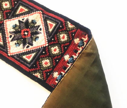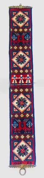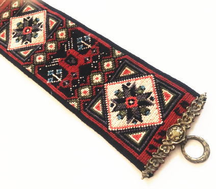 TVISTSOMトゥヴィスト刺繍のタペストリー、古典柄の作品です。真鍮製ベルプル金具がついています
