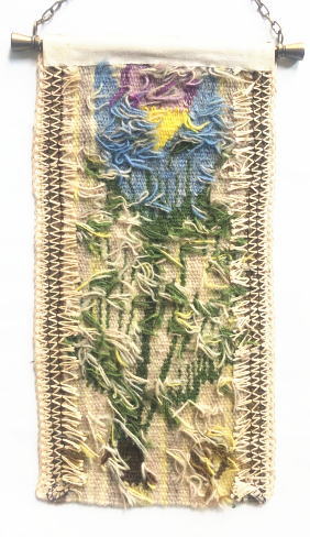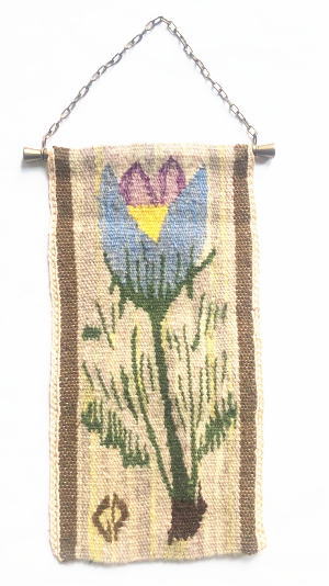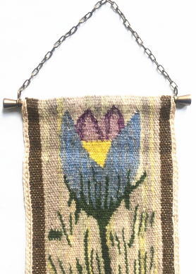 フレミッシュ織り、クラシックなデザインの花がきれいに織り上げられた作品 壁掛けとしてしあげられていて真鍮製のハンガーがついています。