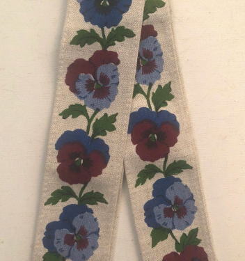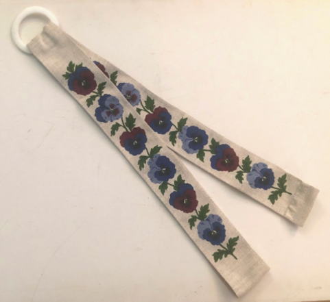 パンジーがハンドプリントされたトレイハンガーです。綿麻製