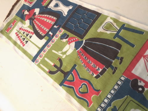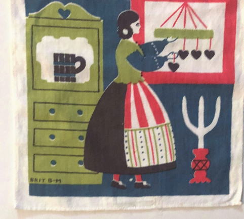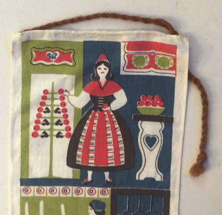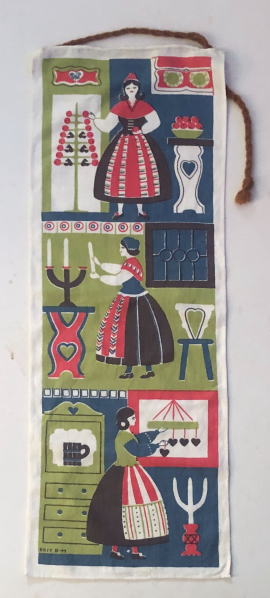 Brit Bredstromデザイン 民族衣装を着てクリスマスの飾りやろうそくをつくったりお部屋を飾ったりクリスマスの準備をするする女の人がプリントされたタペストリーです。