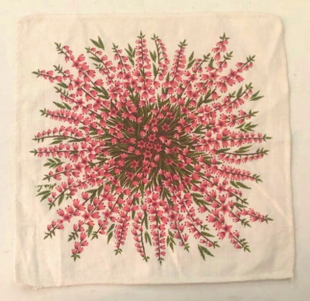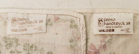 リネアとエリカ(スウェーデンではLjungとよばれる野に咲く花)の花がプリントされたテーブルセンターです。*裏側にfroso Handtryck Swedenのタグがついています。