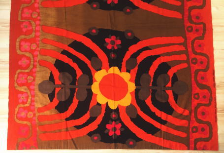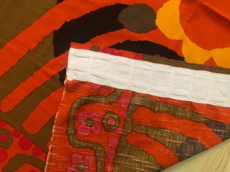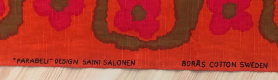 テキスタイルメーカーBoras Cottonn 簿ローズコットン フィンランド人デザイナーSaini Salonenのデザイン Parabeli カーテンとして仕上げられていて上下縫われています