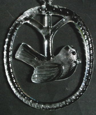 窓辺などに飾るクリスタルガラスのハンギングオーナメント、、、かわいらしい小鳥のデザインです。