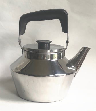 | 現スウェーデン国王のおじにあたるSigvard Bernadotteのデザインによるケトル、スウェーデンで人気が高く入手しにくいもののひとつです。Gerge Jensenのデザイナーという経歴もあるBernadotte、刻印されたサインも美しいものです、、、1リットルはいります |