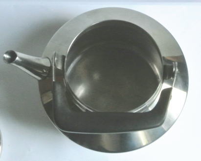 現スウェーデン国王のおじにあたるSigvard Bernadotteのデザインによるケトル、スウェーデンで人気が高く入手しにくいもののひとつです。George Jensenのジュエリーデザイナーという経歴もあるBernadotte,刻印されたサインも美しいものです、、、