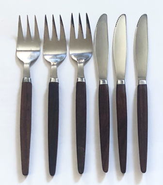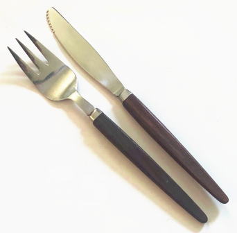 ディナーサイズよりやや小さめのサイズの軽食用のチークハンドルのカトラリーのセットです、、、
