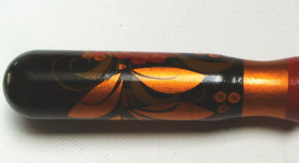 木製ハンドルにブロンズ色の葉 花やラズベリーなどがハンドペイントされたバターカーラー