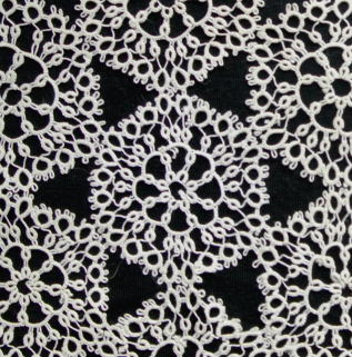 シャトルを使って手間と時間をかけてあまれるタッティングレース(フランス語でFLIVOLITET、ヨーロッパではそう呼ばれることがおおいようです)繊細で美しい作品です。