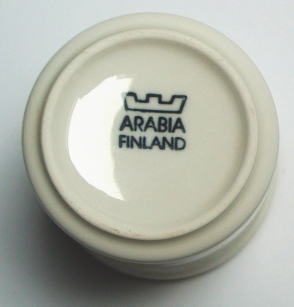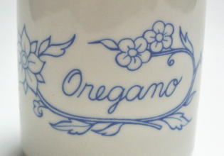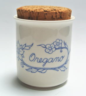 青い線描きのおはなと筆記体でかかれたOregano(オレガノ)の文字が美しいデザインのARABIAのスパイスジャーです。