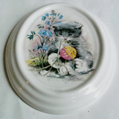 白地にかわいらしい水彩画のようなネコの絵が焼き付けられた陶板 比較的新しい時代のGABRIELの壁掛け あまりみかけることのないものです。