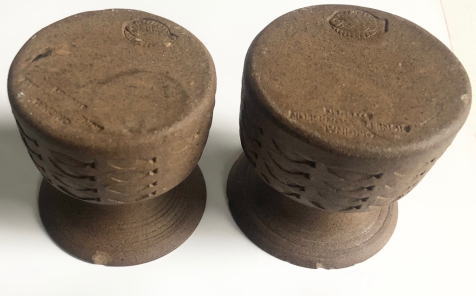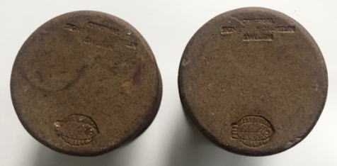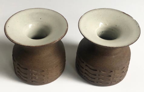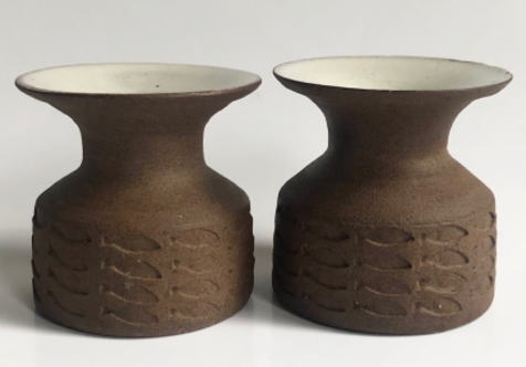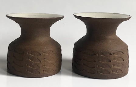 | Signe Persson Melin工房 シグネ.ぺルソン.メリンの ミニベース/キャンドルスタンド、素朴なセラミックに白の釉薬がつかわれ魚の模様が型押しされたSigneらしいセンスの良いデザイン、底部分にはSigne Persson Melin工房のシンボルマークのspatta(かれい)とoriginal signe Persson Melnの文字が刻まれています。 |