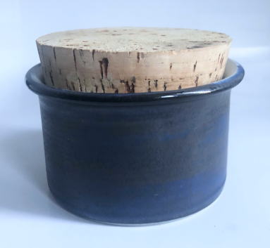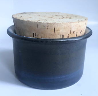 Signe Persson Melinシグネ.ぺルソン.メリンがデザインを手掛けたHoganasホーガネスのコルクのふたのついたポット ブルーとブラウンの独特な釉薬の色合いが良いポットです