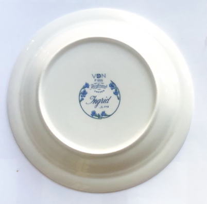 のIngridシリーズのプレート、植物をモティ―フにしたデザインを主に手掛けたJackie Lindによるブルーのお花のデザインがセンスが良く、かわいいです、、、