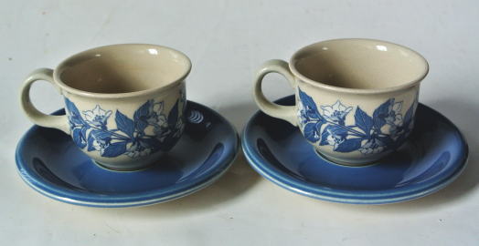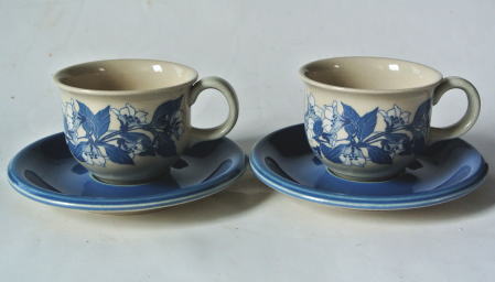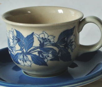スウェーデン スコーネ地方 海沿いの街HOGANASにある1797年創立の歴史あるスウェーデンのセラミックメーカー HOGANASのコーヒーカップ 街の名前がメーカー名になっています ホーガネス(HOGANAS)素朴な単色のセラミック製品が多い中 こちらのカップはりんごの花がデザインされたエレガントなコーヒーカップ 2個セットです