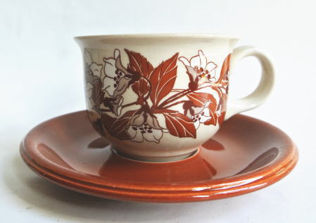 スウェーデン スコーネ地方 海沿いの街HOGANASにある1797年創立の歴史あるスウェーデンのセラミックメーカー HOGANASのコーヒーカップ 街の名前がメーカー名になっています ホーガネス(HOGANAS)素朴な単色のセラミック製品が多い中 こちらのカップはりんごの花がデザインされたエレガントなコーヒーカップ 2個セットです