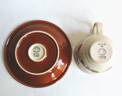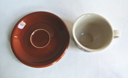 ソーサーにカップをおくことによってできた薄いすれがごくわずかにみられますが、その他われ、かけ等のダメージなく釉薬の状態もよく、カップも良いコンディションです。