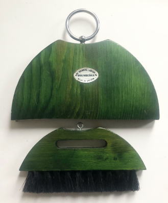 スウェーデン、Karl Holmberg製のテーブルの上の掃除などに使う、機能的なセットです、お食事の後や手芸のあとなど、テーブルのうえをさっとかたずけたいときなどに便利です。 木目を残して落ちつきのあるグリーンにペイントされた木製です。