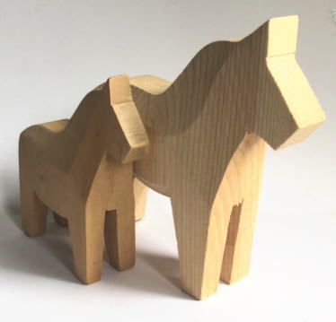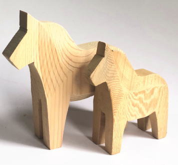 ダーラナホースの絵付けや成形する前の木地仕上げされたものです、手彫りの彫りあとや木目が良い雰囲気です