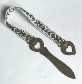 製 模様が刻まれた真鍮製のブックマーク(栞)です。麻のリボンがついています。