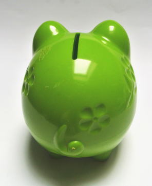 スウェーデンの銀行 Sparbanken銀行のヴィンテージ品のノベルティ,の貯金箱 デザイン 製造はフィンランドです。かわいいこぶたのグリーン(若草色)の貯金箱、お花模様がデボス加工されています 北欧ヴィンテージらしい良いデザインです、鍵はついていませんのでインテリアとして、、、