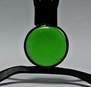 マッシブなガラスがはめ込まれたサンキャッチャーのキャンドルスタンド 自然光の当たるところに置くときれいです ガラスとメタル製 手作業でつくられたものでグリーンのガラスがきれいです